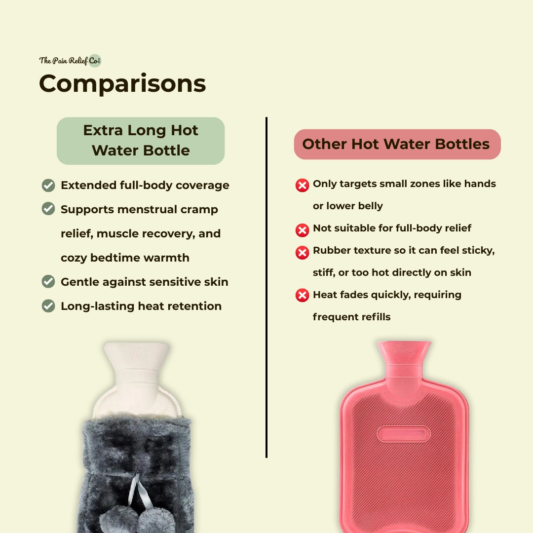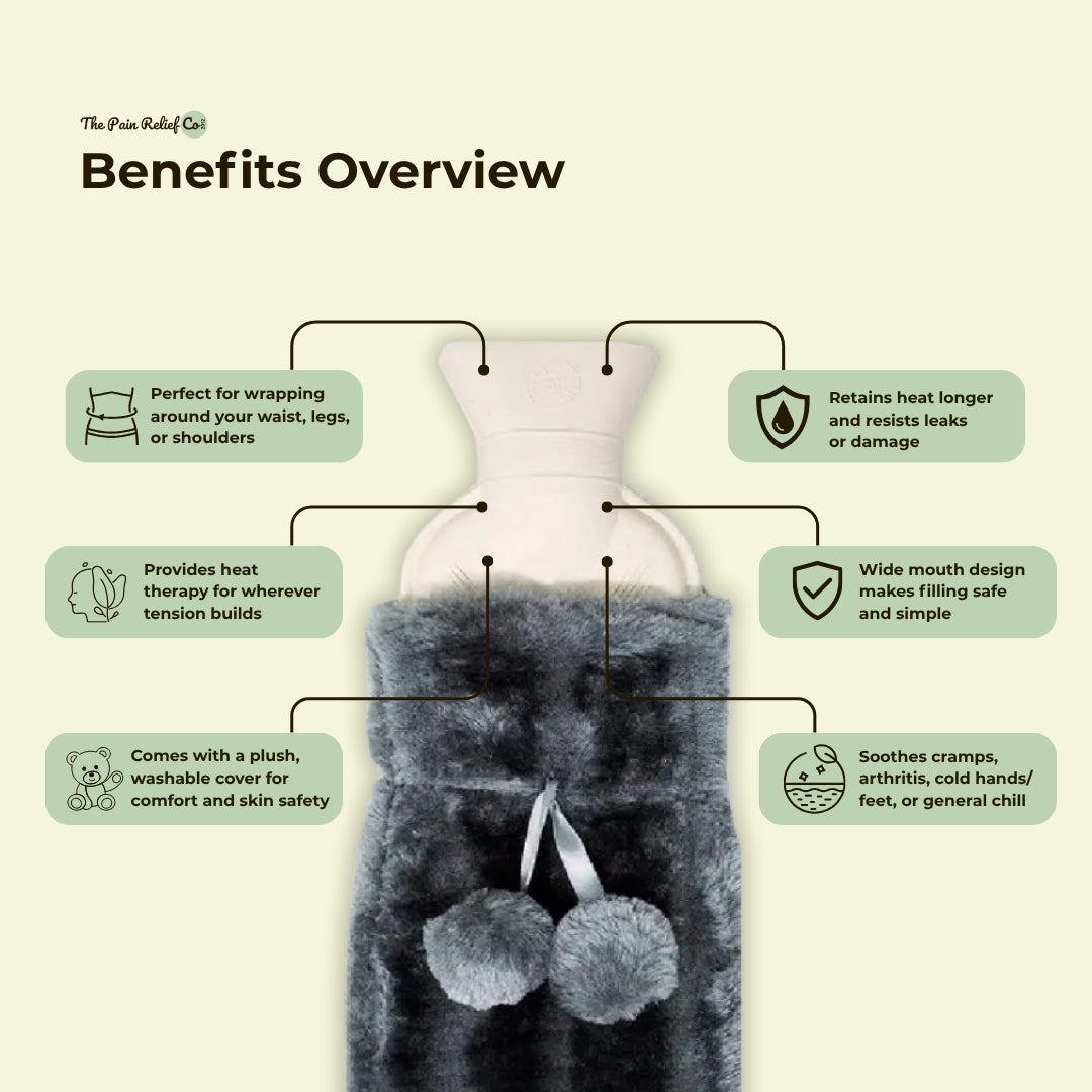 Wrap-around warmth exactly where you need it—this extra long rubber hot water bottle is your go-to for cozy, targeted heat relief.