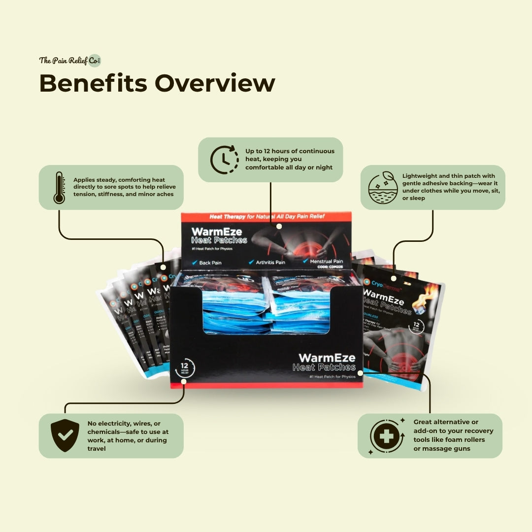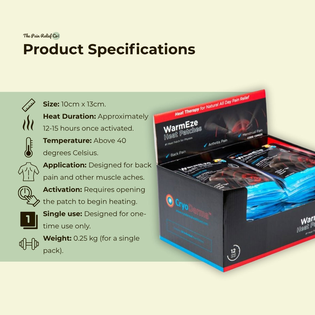 Cryoderma Warm-Eze Heat Patches | 12-Hour Targeted Heat Therapy for Muscle & Joint Relief