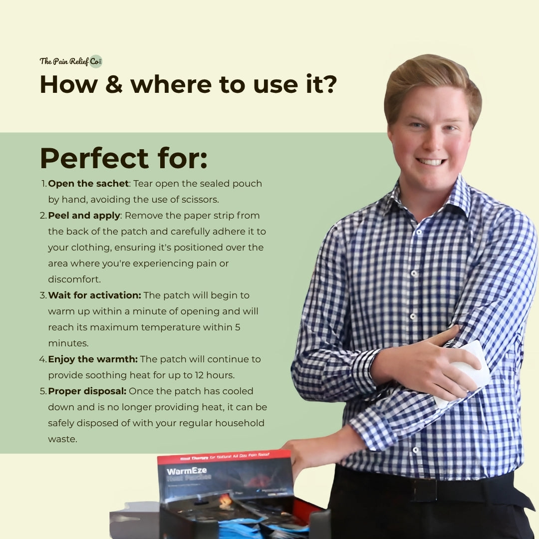 If you have any concerns about using heat patches, or if your pain persists, consult with a doctor or physiotherapist.