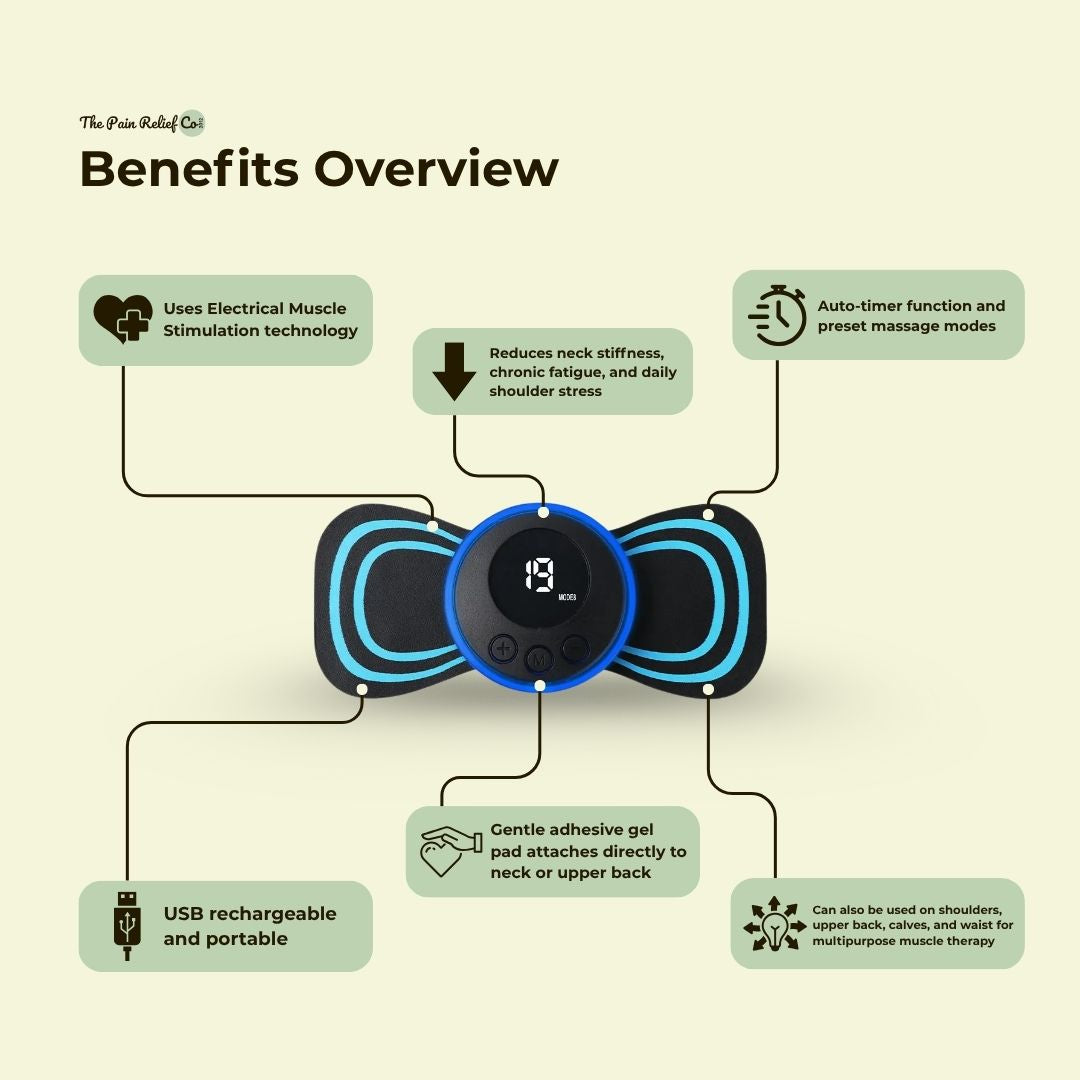 Relieve neck stiffness and muscle tension anytime, anywhere—with this ultra-portable EMS massage patch.